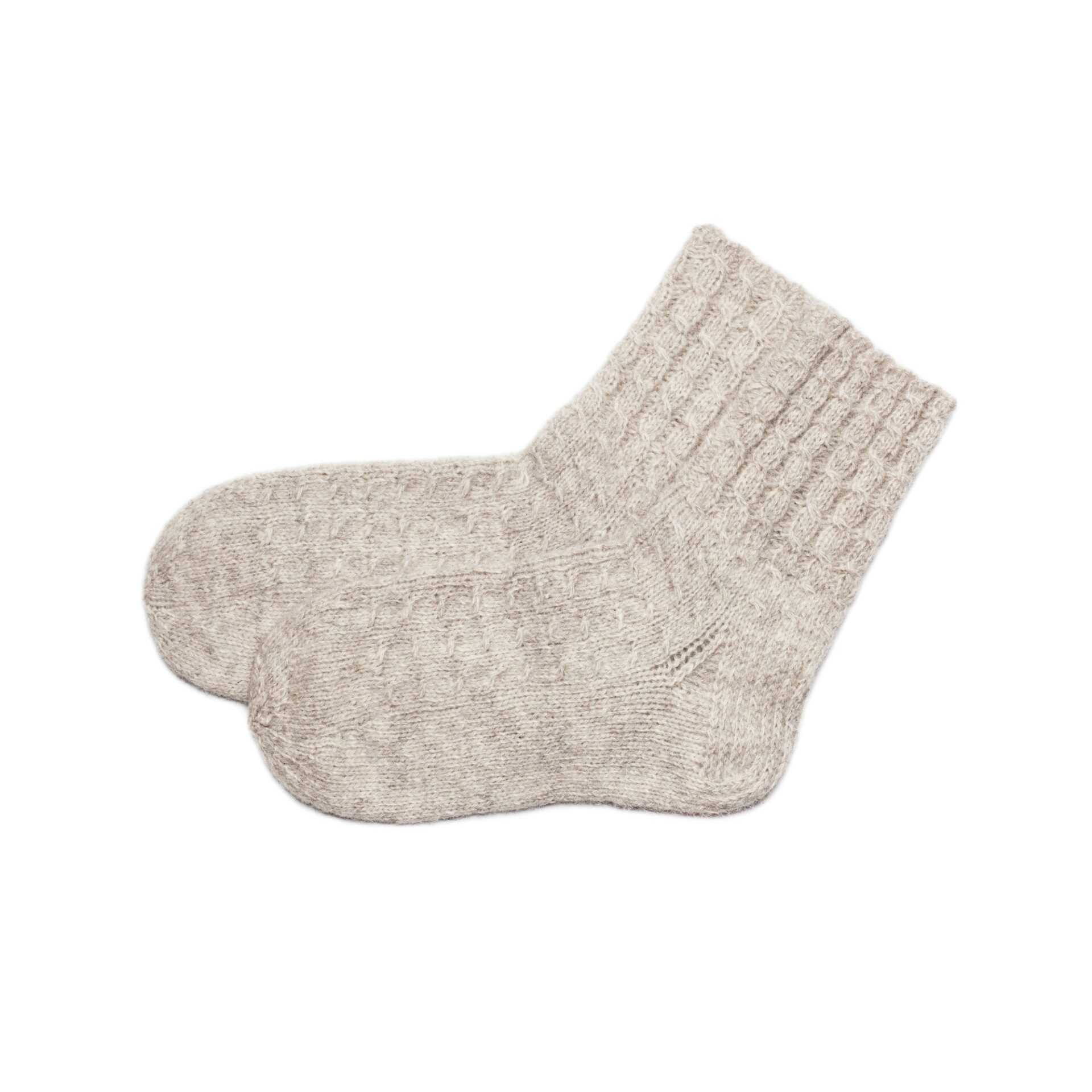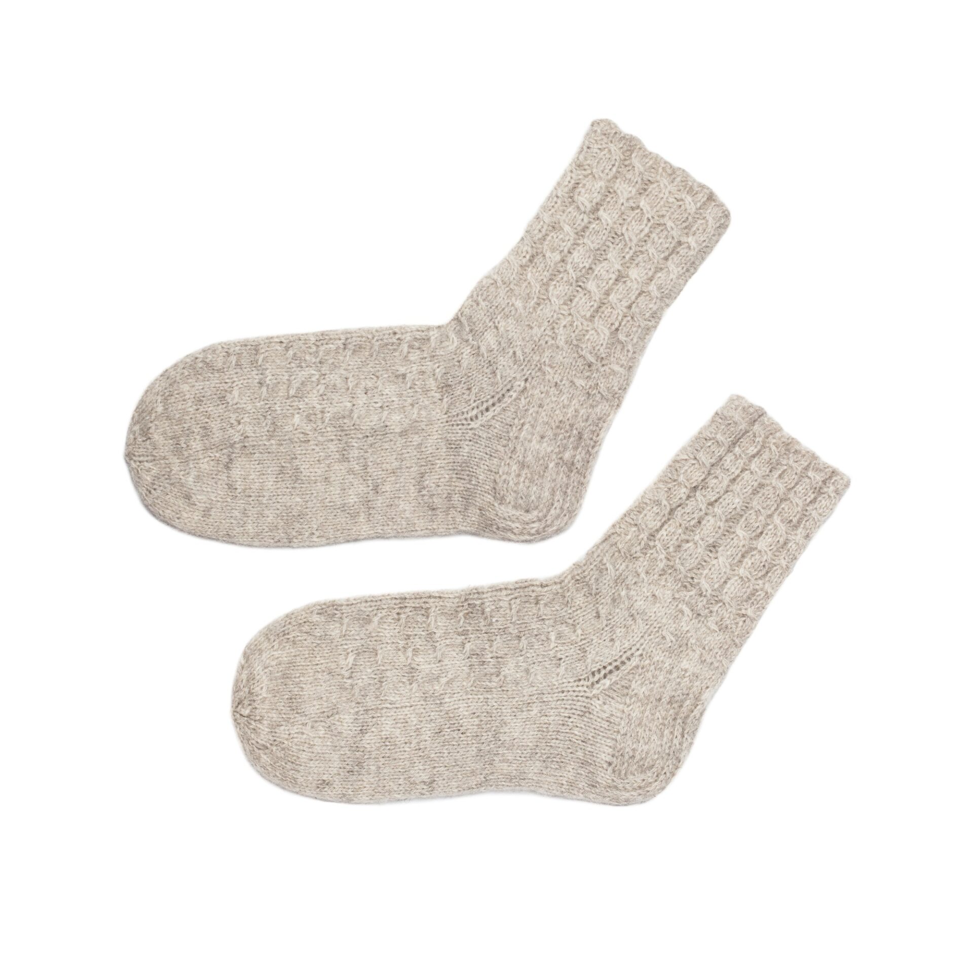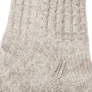 Lõng on valmistatud Süvahavva villavabrik-muuseumis maailma vanimate töötavate villa töötlevate masinatega. Lambavillale on lisatud koera kammvill (30%), mis lisab esemele pehmust, soojust ja raviomadusi. Kootud käsitsi.
