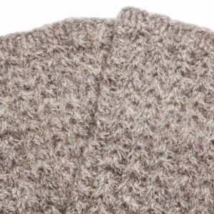 Lõng on valmistatud Süvahavva villavabrik-muuseumis maailma vanimate töötavate villa töötlevate masinatega. Lambavillale on lisatud koera kammvill (30%), mis lisab esemele pehmust, soojust ja raviomadusi. Kootud käsitsi.